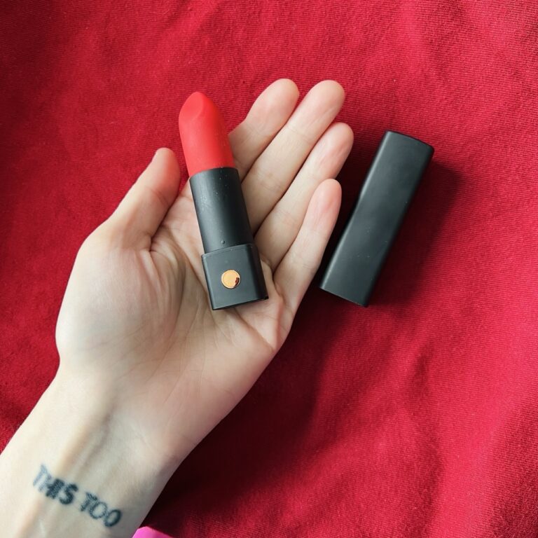 As far as Lovense toys go, this one is pretty simple. It’s basically just your standard bullet vibrator, except that it’s made to look like a lipstick, complete with red tapered tip and sleek removable cap. But it’s a great vibrator, and is easily the best lipstick-esque sex toy I’ve ever had the pleasure of using. Let’s discuss its many benefits and its very few shortcomings…