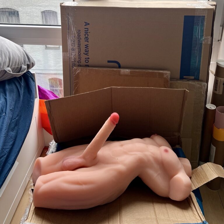That’s what I shouted when the Ppunson 36-lb. realistic male torso sex doll arrived at my apartment. (Phew, his name is a mouthful. Just like his dick.)