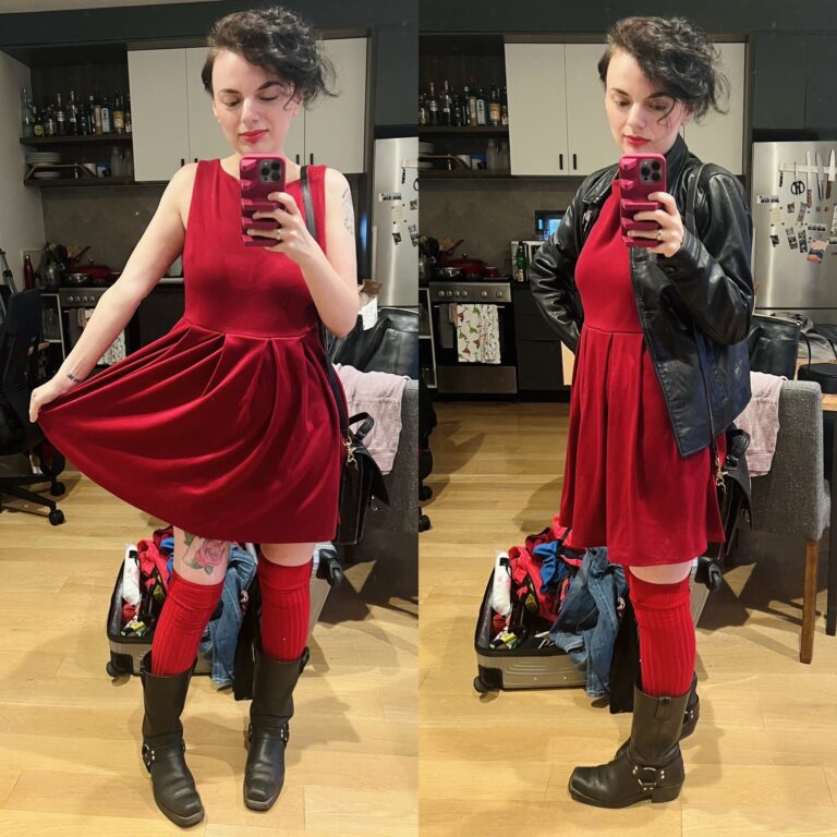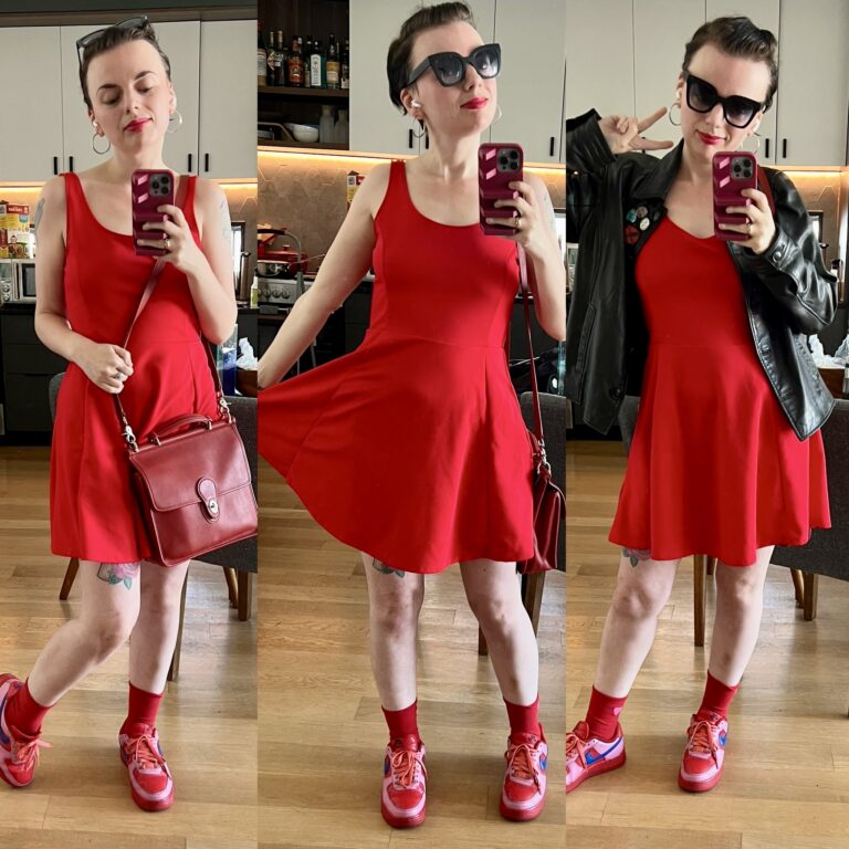 Valentine’s Day outfit! Y’all know I love to dress in a Valentine-y manner and will take any excuse to do so, so I had fun putting this look together, as ever. I had also just received a new push-up bra in the mail from Victoria’s Secret, which was fortuitous timing 😂