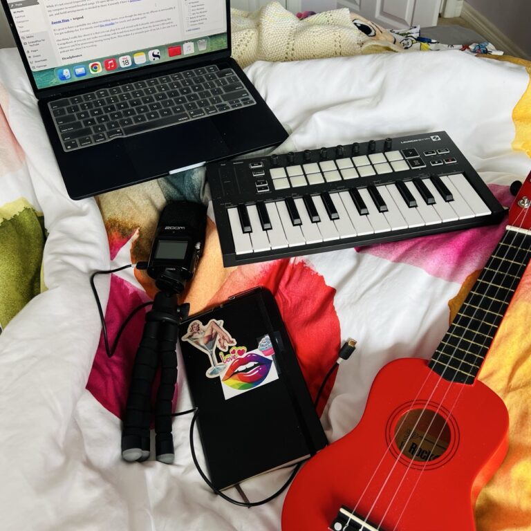 …and that’s pretty much it: everything I use to write songs when I’m away from home! Fellow songwriters, feel free to let me know in the comments what your mobile songwriting kit would consist of.